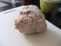I was getting ready to have lunch today so got all the bits ad pieces out of the fridge so they wouldn't be so cold when I was ready to eat. I had the last piece of a neat small rolled shoulder of pork, which was wrapped in foil. When I returned to the kitchen a few minutes later, Oscar my 11 year old rescue cat who had lived on the streets, had the pork lying on the now unwrapped foil on the kitchen floor having a lovely chomp at the pork.