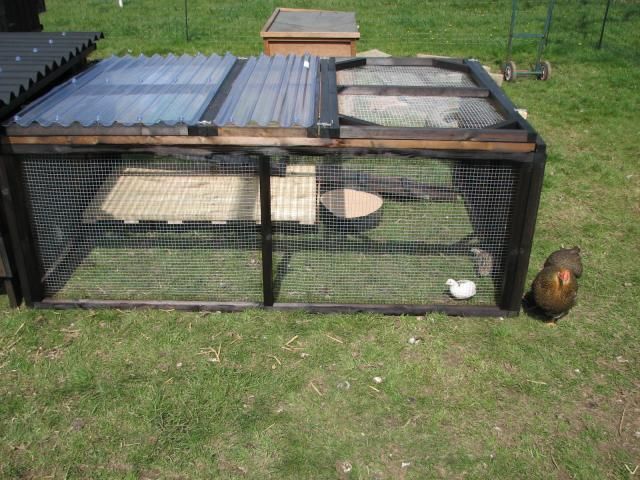 I bought an unused rabbit hutch and 6'x4' run at the weekend, and am modifying it to how I think it should be. I am going for a wire mesh floor and dropping tray underneath, however this can be easily converted to a ply floor if they don't seem happy on the mesh. There will be a little nest box, galvanised wine bottle drinker and hanging chick feeder, creosoted with Onduline roof, open plan design thoughout, whilst outside, through the patio doors down to a sun deck, with covered shelter underneath, a dust bath, some sheltering roof, and still working on the other finer details.....