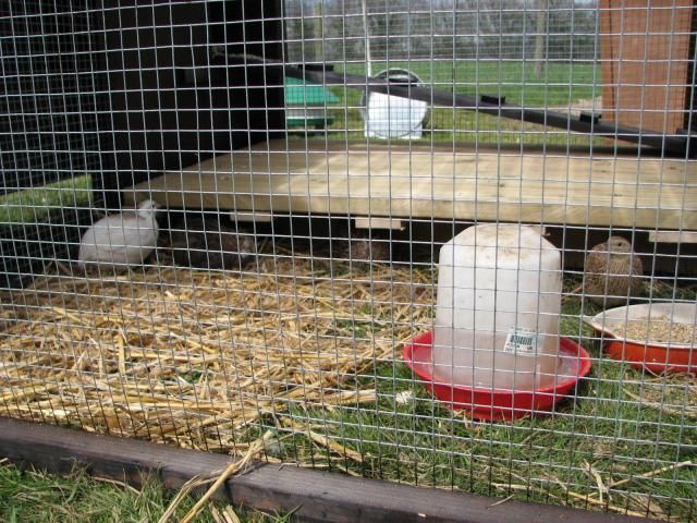 I'm hoping the hanging chick feeder in the hutch will work now..I haven't had the time to sort the feeder in the run yet-early days...but one birdy was having a dust bath in the run food today!! ahh!! :shock:
