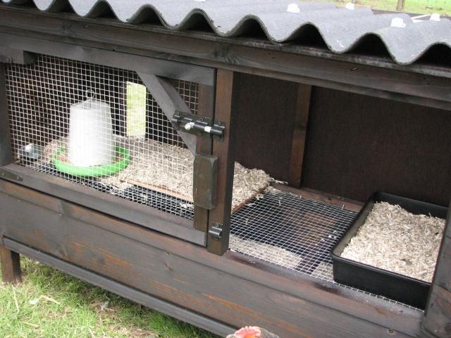 Then I put a hole/ pop hole at the rear of the hutch and modified/improved the roof. (originally it had a hole in the floor of the hutch).