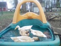 The ducks that I had for 6 months. Great fun, lot of work, lot of yard damage... Had to keep them confined because of the stream across the road, not on my property. If it were on my property... Would have built an enclosure around it for them.